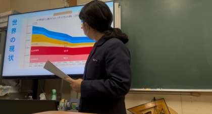 SDGsに関するパワーポイントを作成し、プレゼンテーションをしています。世界の現状から国や自分たちにできることを検討しています。様々な問題を深く考えることができました。
