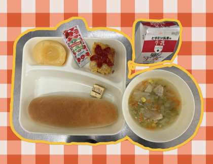 今日の給食では小学校、中学校合わせて約17kgの鶏卵(卵1個60gとすると、約280個分の卵)を使いまいした。