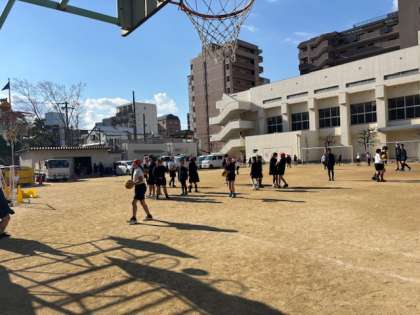 体育科の授業で学んだ、フラッグフットボールのボールでキャッチボールをしたり、バスケットボールでシュート練習をしたりと、楽しそうでした。やっぱり体を動かすことって気持ちがいいですよね。