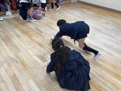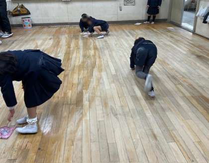 みんなで教室の床を綺麗に拭きました。