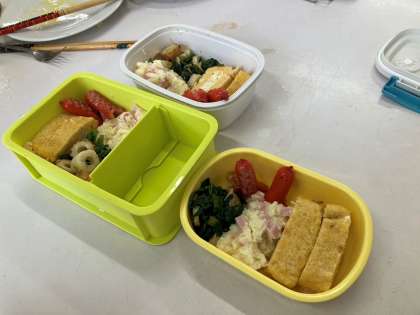 自分たちで考えたメニューです。彩りなども工夫されておりとても美味しくいただきました!!!これを機にお家でもたくさん料理を作ってみよう。ごちそうさまでした。