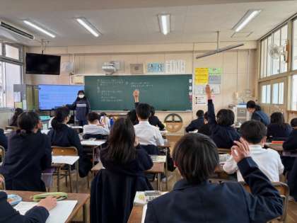 算数科の学習では、円周率についての勉強をしています。今回は、「直径と円周はどのように関係しているのか」について考えました。表に表すことで「3.14cmずつ増えている!」「比例している」など、気づいたことをどんどん発表していました。