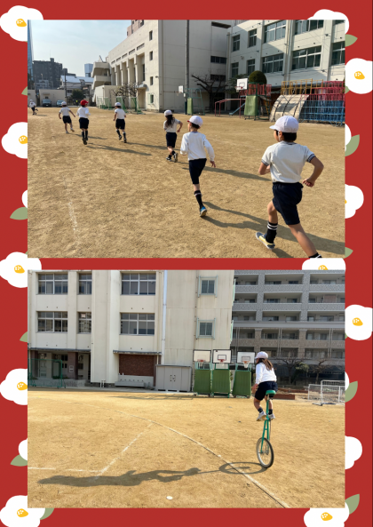 また、桜の力の合格を目指してボール投げやなわとび、一輪車等練習をしました。
