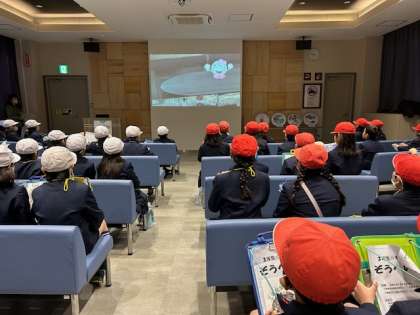 子どもたちはいただいたパンフレットを見ながら一生懸命聞いています。