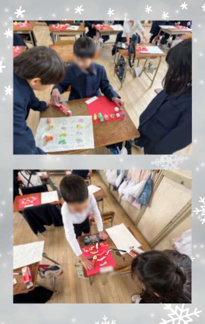 赤い画用紙の上にのせると、より華やかに見えますね!