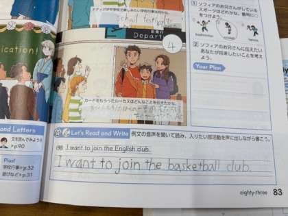 外国語の時間には自分の将来の夢を映画で表現する活動をしています。また、中学校に行って入りたい部活についても発表しています。夢や目標にむかって頑張ろう!