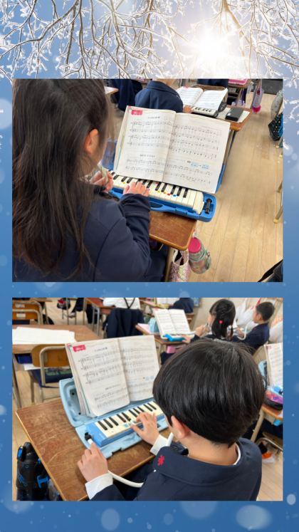 音楽の学習では、鍵盤ハーモニカの練習をしました。「アンダルコの歌」や「エーデルワイス」、「春が来た」を演奏しました。