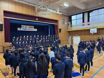 今日は卒業おめでとう集会がありました。各学年から6年生への感謝の気持ちをこめた、お祝いのメッセージや歌をプレゼントしたり、6年生からの歌のお返しがあったりと、素敵な時間となりました。