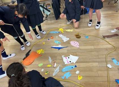理科の時間に今までの学習を生かしておもちゃを作りました。作ったおもちゃを班で対抗して遊びました。