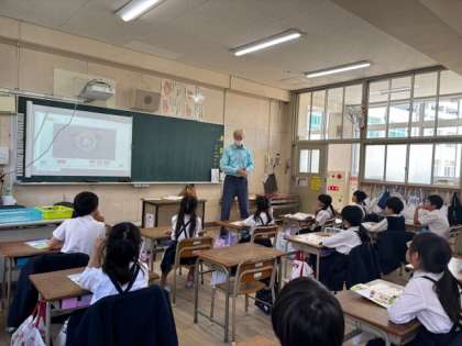 今日ははじめてのC-NETの先生との外国語活動でした。先生の出身、アメリカの話などが盛り上がりましたね!また、簡単な挨拶などをして楽しみました。お家でもぜひ聞いてみてくださいね!