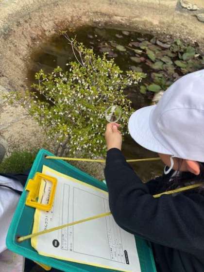 今日の理科の時間には学習園に行き、春の生き物を探しにいきました。ナヨナヨワスレナグサ、ペンペングサなどあまり馴染みのない植物も見つけることができましたね!