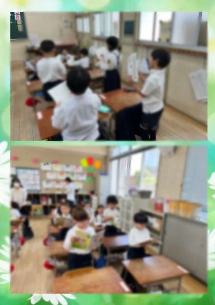 国語科の学習では、「あめですよ」の音読発表会をしました。