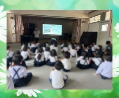 今日は、来週の遠足に向けて、学年で説明会を行いました。