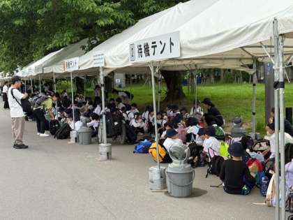先ほど全学年、無事に森ノ宮まで到着し、次に乗る専用列車を待っています!!