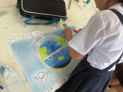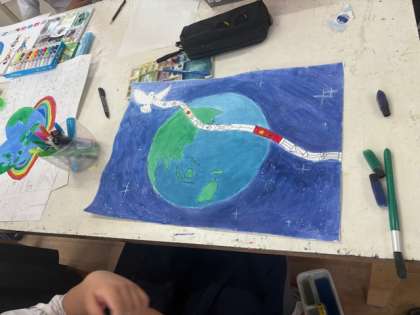 これまでに習ってきた様々な技法を思い出し、自分の絵に合う色の塗り方をしました。