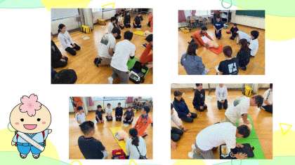 来月から始まるプール水泳学習に向けて、教職員研修として消防署の方をお招きしての救急救命講習を行いました。