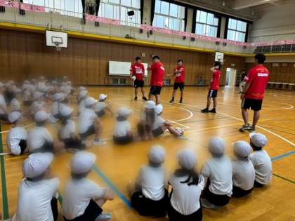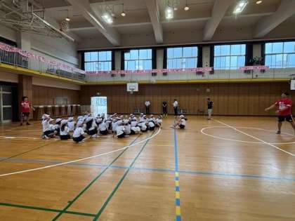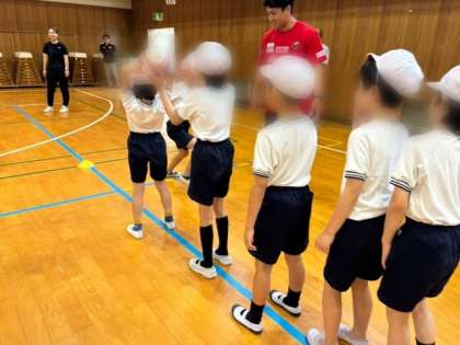 今日はラグビーチーム『レッドハリケーンズ大阪』の皆さんが来校され、ラグビーに関する授業をしてくださりました。ボールの持ち方やパスなど基本的な動きを知りました。はじめてのことばかりでしたが、子どもたちは楽しく笑顔で体を動かすことができました。