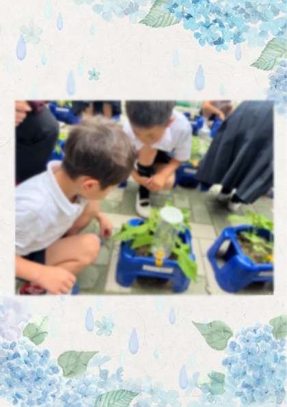 植木鉢から取ったあさがおは、学習園に植え、「ひろいところでおおきくなってね!」とお願いをしました。ぐんぐん大きくなあれ!