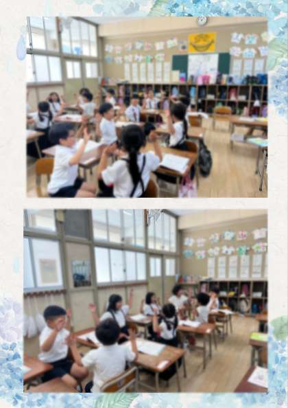 音楽科の学習では、拍を感じながら1人から2人…とどんどん人数を増やしてリズム打ちをしました。休符もしっかり感じとることができましたね!どのくらいの力加減で手を打つのが良いのかも考え、楽しく学習ができました。