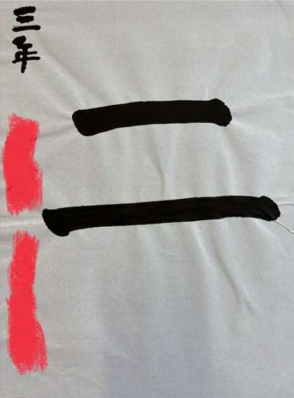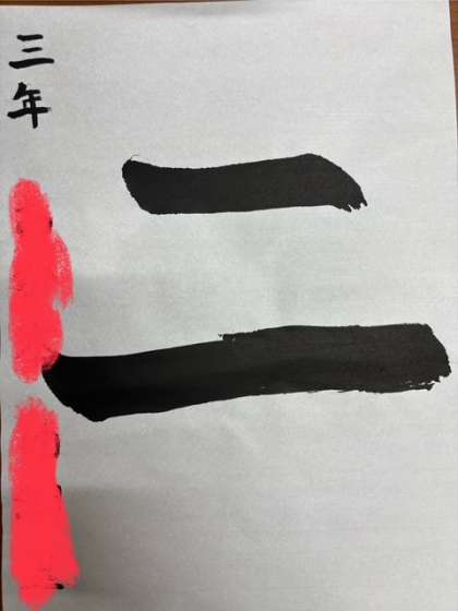 毛筆の授業では『ニ』を書きました。穂先の向きなど様々なことを意識しながら集中して書くことができました。これからも頑張っていきましょう!