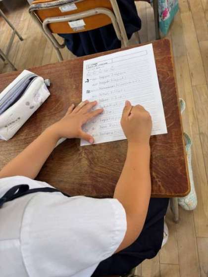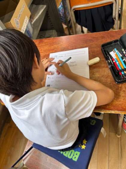 ローマ字の練習は続きます。いろいろな単語を書いて練習です!自分の名前はローマ字で書けるようになりましたか?がんばろう!