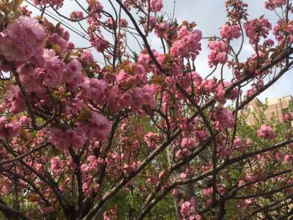 ソメイヨシノが散りそめとなりました。今度は、「八重桜」が見頃です。玄関の東側と学習園の南と西にあります。お立ち寄りのせつは、ぜひご覧ください。