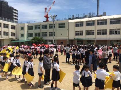 5月17日(火)運動場に巨大な「桜っこ」が描かれました。創立110周年記念事業として、航空写真を撮りました。天候があやぶまれましたが、晴天にめぐまれました。自分は「桜っこ」の「ここ」とおぼえているかな?