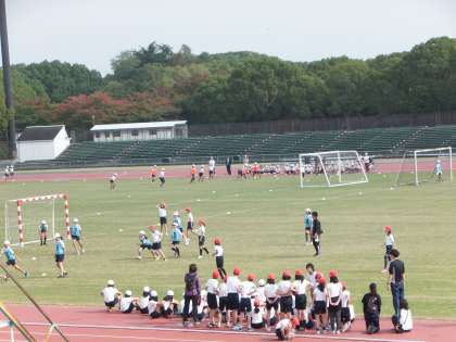 午前は、天然芝の上でサッカーをしました。桜小は強かったです。