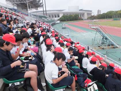 午後は、メインスタジアムで100メートル走と400メートルリレーです。