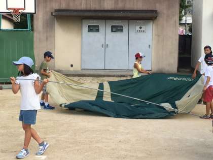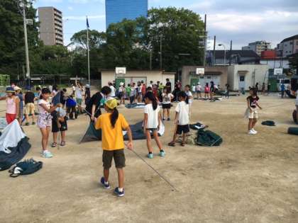 みんなで協力して、テントをたてました。ちょっと苦労している班もありましたね。