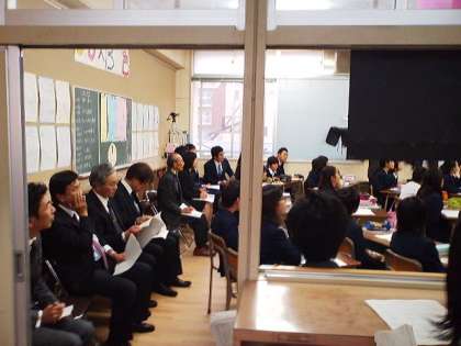 単元「戦争と人々のくらし」の研究授業と討議会に、市内の社会科を専門にされている先生方と、大阪市の2年次・5年次・10年次研修対象の若手教員が、多数参加されました。