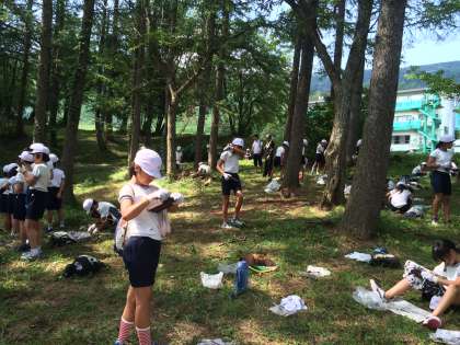 宿舎に着いて、荷物を置き避難訓練をした後、活動第一段の焼き板磨きです。いろんな所を炭で黒くしながら一生懸命磨きます。