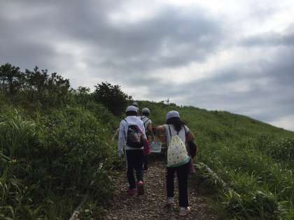 鉢伏山の険しい山道に苦労しながら頂上目指して登ります。