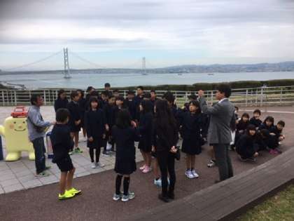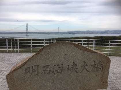 サービスエリアでは、明石海峡大橋をバックにみんなで写真を撮りました!