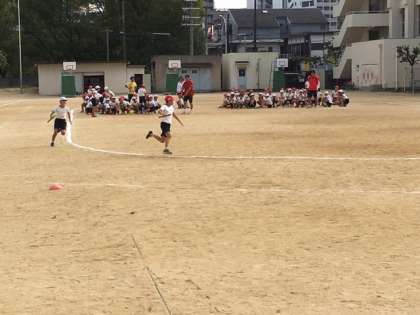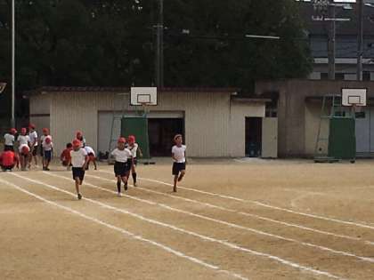 7月の水泳に続いて、今日は4年生対象に5.6時間目に陸上運動の特別授業を行いました。都島区の事業で、外部の講師の方に来ていただき、走り方などを習いました。