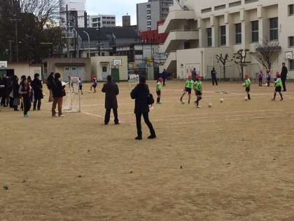 ときおり小雪が舞い散るなかでしたが、どの子も元気に活動していました。大阪市内から約50名の先生方の参加がありました。