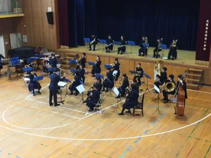 2月11日(土)に、桜宮中学校の吹奏楽部を招いて、PTAふれあいコンサートが講堂で行われました。すばらしい演奏で心あたたまり、その後PTAのみなさんから「とん汁」と「わたがし」がふるまわれ、身もあたたまりました。