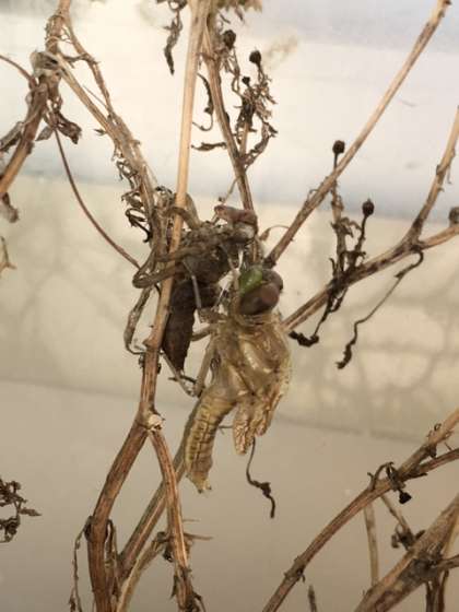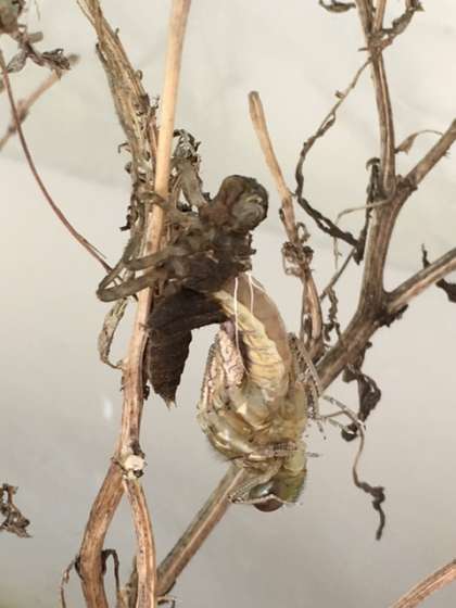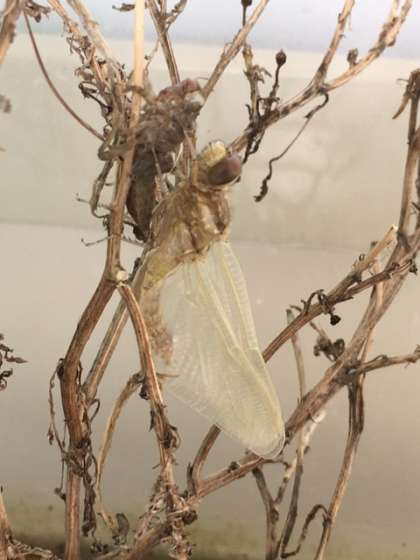 5月10日、校長室前の虫かごからトンボが羽化しました。