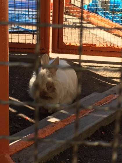 ゴールデンウィーク前から、管理作業員さんが取り組みを進めてきた、ウサギ小屋のリフォームが、今日(5月18日)ようやく完成しました。