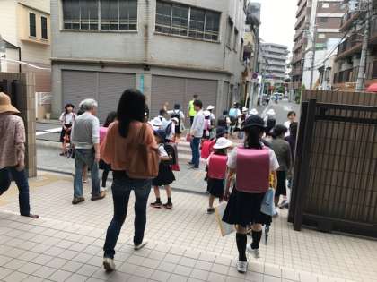 台風がきたり、災害がおきたりした場合などに、地域ごとに集団で下校することになります。安全に下校できるよう練習にもなっています。