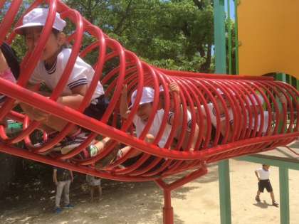 6月2日(金)に,1・2年生で大阪城に遠足に行きました。天候にも恵まれ,すべての活動を楽しく行うことができました。西の丸庭園では,2年生が考えてくれた遊びをファミリーで楽しみました。その後,お弁当を食べ,噴水近くの遊具広場で遊びました。お家でも,今日楽しかったことについて聞いてあげてください。