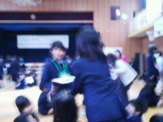 そのあと、各学年から歌のプレゼント、卒業生からはお礼のプレゼントとリコーダーの演奏がありました。