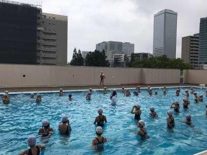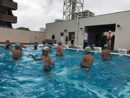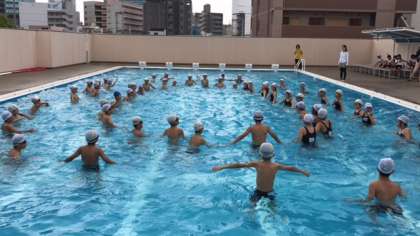 今回の講師は、シンクロナイズドスイミングの橘雅子さんです。2時間目に5年生、3時間目に6年生が実技の授業を受けました。