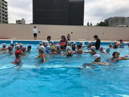 プールでは,トンネルじゃんけん列車をしたり,宝探しをしたりして遊びました。遊びに夢中になりすぎて,気づけば,幼稚園のお友だちとはぐれてしまう…!というような,ハプニングもありましたが,みんなで楽しく活動することができました。