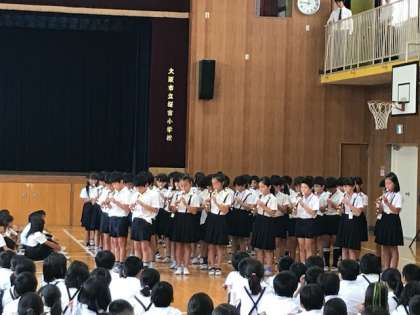 校長先生からは、夏休みの地域学校行事の紹介から世界陸上のお話、そして夏休みの過ごし方についてお話がありました。