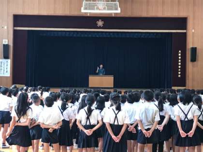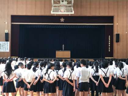7月20日(木)午前9時から、講堂で第1学期の終業式を行いました。3年生の発表、校長先生のお話、生活指導の先生からのお話と続きました。