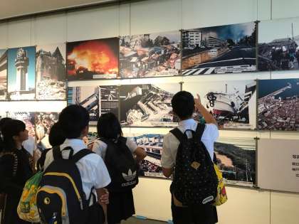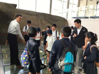 サービスエリアで明石海峡大橋を眺め、その後、北淡町震災記念館を見学しました。阪神・淡路大震災の体験談を聞かせていただき、映像資料や実際の地震断層の見学、地震体験活動などを通して防災の意識を高めました。