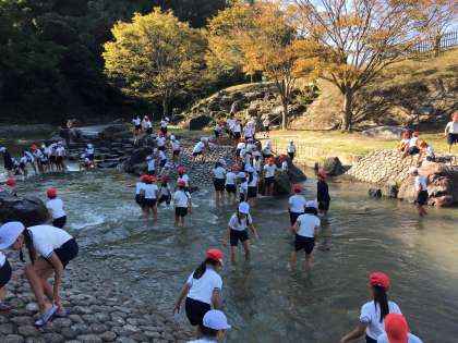 川遊びもたのしかったようで、笑顔がいっぱいでした。