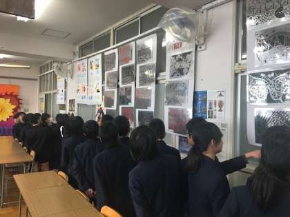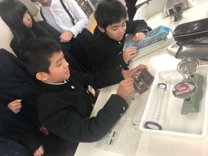 中学校の先生のお話を聞いたあと、中学1年生と2年生の授業の様子を見学したり、被服室や理科室、美術室などの特別教室をまわったりしました。