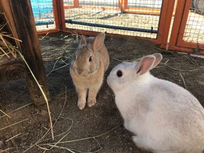 2月14日(水)の10時30分頃に、東淀川区大道南小学校から譲り受けた2羽のうさぎが届きました。生後半年だそうです。昨年惜しくも亡くなったシロップ。その後、ウサギ小屋は静かなままでしたが今日からこの2羽のうさぎが暮らします。